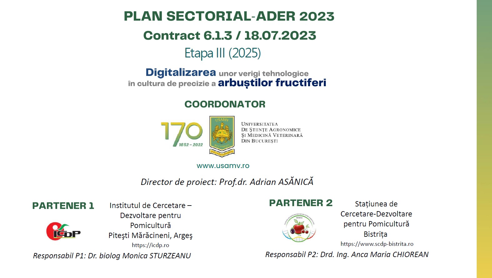 - Validarea unor aplicaţii digitale de control şi management al unor verigi tehnologice la arbustii fructiferi;